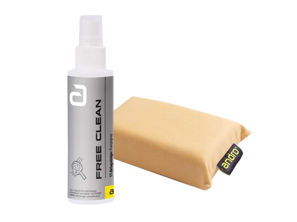 Andro Free Clean je jedným z najlepších čističov a ochranných prostriedkov na Vaše poťahy. Pravidelné čistenie zabezpečuje dlhšiu životnosť gumy a najlepšie vlastnosti vyčisteného poťahu pre Vašu hru.