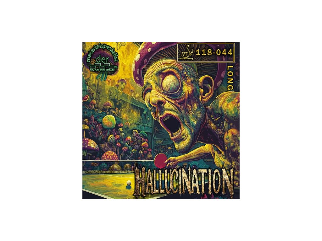 Aby sa dosiahlo dokonalé zníženie rýchlosti a maximálne hodnoty kontroly, HALLUCINATION má novú, mäkkú, elastickú gumovú zmes, ktorá tlmí nárazy lopty a umožňuje krátke blokovanie lopty v útoku súpera.